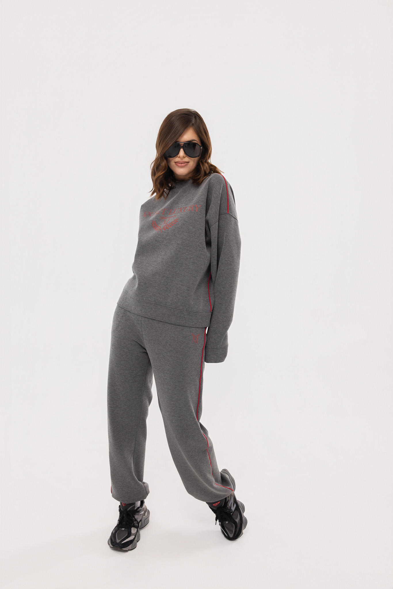 Izrađena od visokokvalitetnog, mekanog pamuka sa dodatkom elastina, ovaj model pruža izuzetnu udobnost i ležeran, ali luksuzan izgled.Dukserica klasičnog kroja sa natpisom Quiet Luxury-Great Season i pantalonama ravnog kroja sa logotipom M ističe prefinjen minimalizam.